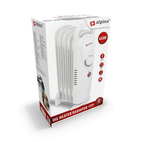 Az Alpina kompakt, 5 tagú olajradiátora ideális kiegészítő fűtés kisebb helyiségekbe, irodákba vagy hálószobákba. Az 650 W teljesítményű készülék halk működéssel biztosítja a kellemes meleget, miközben egyszerűen kezelhető a beépített hőfokszabályzóval. Kis mérete miatt könnyen hordozható és tárolható.