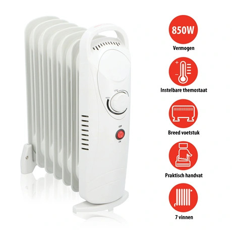• 7 tagú radiátor: olajjal töltött, egyenletes hőeloszlás.