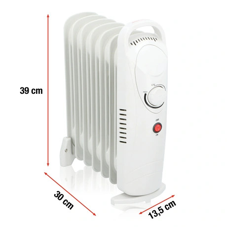 Az Alpina 7 tagú olajradiátora ideális megoldás kisebb helyiségek gyors és hatékony fűtésére. A 850 W teljesítménynek köszönhetően egyenletes meleget biztosít, míg a kompakt méret lehetővé teszi, hogy akár hálószobában, irodában vagy nappaliban is kényelmesen használható legyen. A beépített mechanikus hőfokszabályzó segítségével könnyen beállítható a kívánt hőmérséklet, a túlmelegedés elleni védelem pedig biztonságos működést garantál.