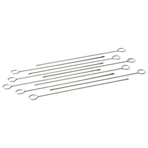 Ez a kiváló minőségű, újrafelhasználható nyárskészlet tartalmaz 10 darab 33cm hosszú rozsdamentes acélnyársat, amelyek ideálisak húsok, zöldségek vagy akár gyümölcsök grillre tűzéséhez. A lekerekített végpontoknak köszönhetően a hozzávalók biztonságosan a helyükön maradnak sütés közben.