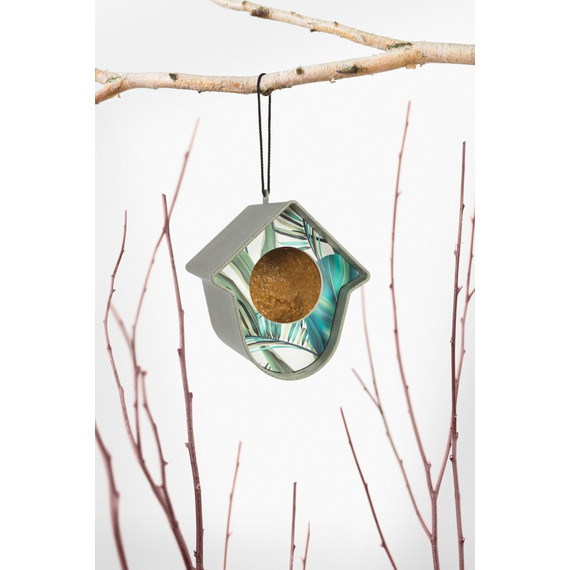 EVIE 100%-ban újrahasznosított madáretető szürke, levélmintás előlappal 15x13,5x17