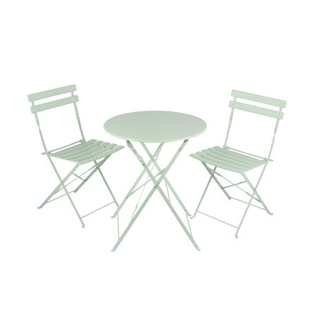 60x72cm asztal + 2db  42x45x81cm szék 4x20mm fém váz zöld