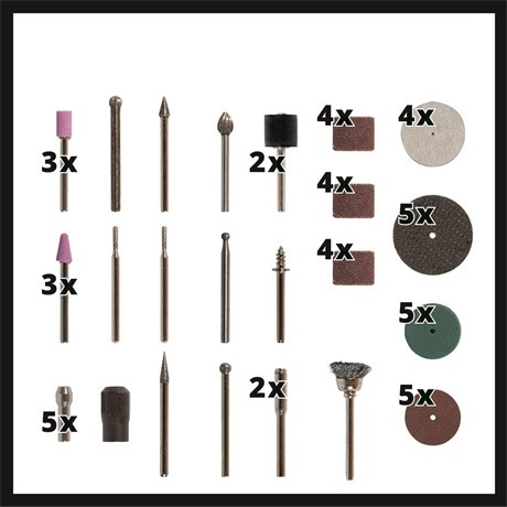 Az Einhell TE-MT 7,2 Li akkumulátoros csiszoló/gravírozóját gravírozási, marási, csiszolási munkákhoz és kefével történő tisztításhoz tervezték. Használja otthon, a műhelyben vagy a garázsban! A készülék gyári csomagolása tartalmazza a hosszú élettartamú akkumulátort (7,2 V | 1500 mAh). A LED-kijelzővel ellátott fordulatszám-szabályozó elektronika lehetővé teszi, hogy mindig az elvégzendő feladat tulajdonságaihoz igazítsa a készülék fordulatszámát (5500-26 000 min^-1). A rögzítőgomb egyszerű és gyors szerszámcserét tesz lehetővé. A munkadarab optimális megvilágításáról a LED-körfény gondoskodik. A biztos tartást és a precíz munkavégzést az ergonomikus Softgrip borítású felületek garantálják. A csiszoló és gravírozó készülék mindig használatra kész a töltőállomásnak köszönhetően. Az univerzális felhasználás biztosítása érdekében a csiszoló/gravírozó készülék gyári csomagolása egy praktikus tárolódobozba helyezett, 57 részes tartozékkészletet is tartalmaz.