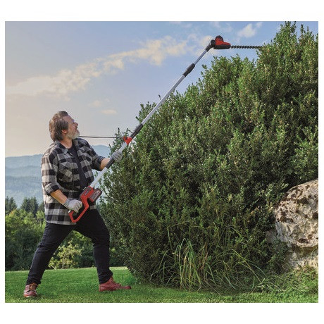Az Einhell magassági sövényvágó a maximális rugalmasságot és nagy teljesítményt biztosító Power X-Change rendszercsalád tagja. A PXC rendszercsalád kiváló minőségű lítium-ion akkumulátorait a sorozat valamennyi készülékéhez felhasználhatja. A sövényvágó kései lézerrel vágott, gyémántcsiszolású acélból készültek. A 410 mm-es maximális vágáshosszúság és a percenkénti 1400-as vágásszám gyors és hatékony munkavégzést biztosít. A hét különböző fokozatba dönthető motorfej és a forgatható főfogantyú rugalmas használatot tesz lehetővé. A gumírozott markolat biztos és erős tartást garantál, és a hevederrel együtt kényelmes, ergonomikus munkavégzést szavatol. Az erős fém hajtómű hosszú élettartamot garantál a készüléknek. A hosszabbítónyélnek köszönhetően a magassági sövényvágót magasabb sövényekhez is használhatja. Ha nem dolgozik a sövényvágóval, akkor húzza a gyári csomagolásban lévő kemény védőtokot a vágókésekre: így biztonságosan és egyszerűen szállíthatja, illetve tárolhatja a készüléket. A készülék akkumulátor és töltőkészülék nélküli kivitelben érhető el. Ezeket külön – például praktikus kezdőcsomag formájában – vásárolhatja meg.