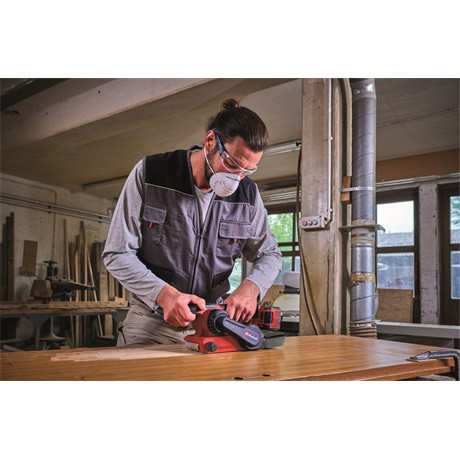 Az Einhell TP-BS 18/457 Li BL akkumulátoros szalagcsiszoló nélkülözhetetlen segítőtárs a hobbiasztalosi munkák elvégzésében: segítségével pillanatok alatt, kis energiabefektetéssel és egyenletesen munkálhatja meg még a nagyobb felületeket is. Az akkus készülék a nagy teljesítményű Einhell Power X-Change termékcsalád tagja, melynek valamennyi eleme – beleértve az összes akkumulátort, készüléket és töltőt – kombinálható egymással. A 126x75 mm-es csiszolófelület, a 250 m/perc maximális csiszolószalag-sebesség és a folyamatos használat lehetővé teszi, hogy a szalagcsiszoló segítségével még a nagyobb felületeket is könnyedén megmunkálhassa. Ezt a készüléket Einhell PurePOWER szénkefe nélküli motorral szerelték fel. A szénkefe nélküli motorok nagyobb erőátvitelt és hosszabb üzemidőt garantálnak, mint a szénkefével gyártott társaik. A szénkefe nélküli (Brushless) motorokra – online regisztrációt követően – 10 év jótállást vállalunk. A fordulatszám-szabályozó elektronikának köszönhetően a fordulatszámot mindig a megmunkálandó anyag tulajdonságaihoz igazíthatja. A folyamatos üzem nagyban megkönnyíti a használatot, ha huzamosabb ideig kell dolgoznia a készülékkel. A kényelmes és egyszerű kezelés érdekében a készüléket nagy méretű fogantyúval, valamint Softgrip borítású pótfogantyúval szerelték fel. Az erre a célra kialakított sima felület lehetővé teszi, hogy a készüléket stabil, vízszintes felületre állítva is használhassa. A porelszívás és a mellékelt porgyűjtő doboz biztosítja, hogy a munkaterület mindig pormentes legyen. A porszívóadapterhez csatlakoztathatja pl. az Einhell száraz-nedves porszívóit is. A szalagcsiszolóhoz 457x75 mm nagyságú csiszolószalagokat használhat. A gyári csomagolásban 3 darab P80 csiszolópapír található, így kicsomagolás után akár azonnal meg is kezdheti a munkát a készülékkel. A szerszám nélkül, rögzítőkarral beállítható csiszolószalag-feszítésnek köszönhetően egyszerűen kicserélheti, és pontosan beállíthatja a szalagot. Akku és a töltő nélkül. Ezeket külön - például praktikus kezdőcsomagok formájában - vásárolhatja meg.