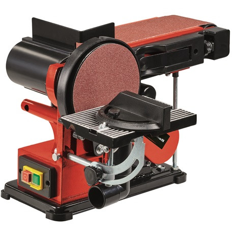 Az Einhell TC-US 380 asztali szalagcsiszoló egy 380 watt teljesítményű készülék, amelyet szalag- és tányércsiszoló funkcióival, illetve ütközővel felszerelt, dönthető szalagcsiszoló-berendezéssel láttak el. Az egyszerű szalagcserét a csiszolószalag centrírozását segítő rögzítőszerkezet biztosítja. A gyors csere érdekében a 150 mm átmérőjű tányért tépőzáras rögzítéssel látták el. A stabil, csavarodásmentes, dönthető és jól látható szögbeosztással ellátott alumíniumasztal mindkét csiszolóegységhez használható, és ezáltal rendkívül sokoldalú felhasználási lehetőséget biztosít. A keresztütköző -60° és +60° között dönthető. A maximális stabilitásról a négy robusztus, rezgéscsökkentett gumiláb, a munkaterület tisztaságáról pedig a porelszívó-adapter gondoskodik. A készüléket csiszolószalaggal és -koronggal együtt vásárolhatja meg.