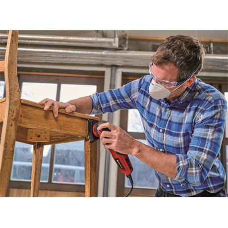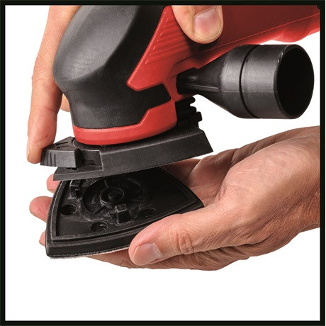 Az Einhell TC-DS 20 E deltacsiszoló egy könnyen kezelhető, 200 W teljesítményű készülék, amelyet fa, műanyag és fém csiszolására terveztek. Ez a hosszú üzemidejű csiszoló nem hiányozhat egyetlen ezermester műhelyéből sem! A csiszolópapírok formája különösen a szegletekkel taglalt, nehezen hozzáférhető helyeken biztosít könnyű munkavégzést: a csiszolótalp – melynek mindhárom oldala 93 mm hosszú – 3 különböző pozícióba forgatható. A fordulatszám-szabályozó elektronika lehetővé teszi, hogy a készülék teljesítményét mindig a megmunkálandó anyag tulajdonságaihoz igazíthassa. Rezgőkör: 2 mm. Rezgéstartomány: 12 000 – 22 000 rezgés/perc. A tépőzáras rögzítésnek köszönhetően pillanatok alatt kicserélheti a csiszolópapírokat, és erősen rögzítheti őket a legkülönfélébb munkák elvégzéséhez. A könnyű munkavégzésről az ergonomikus kialakítás és a Softgrip felület gondoskodik. A deltacsiszolón lévő 36 mm átmérőjű adapterhez csatlakoztathat például egy Einhell száraz-nedves porszívót is: a munkaterület így mindig tiszta és rendezett lesz. A gyári csomagolás 9 darab csiszolópapírt (2x K60, 2x K120, 2x K240, 3x K400) tartalmaz, így akár már rögtön a kicsomagolást követően megkezdheti a munkát a készülékkel. A feltekert kábel rögzítésére szolgáló kábelcsíptetőnek köszönhetően a deltacsiszoló mindig rendezetten és biztonságosan tárolható.