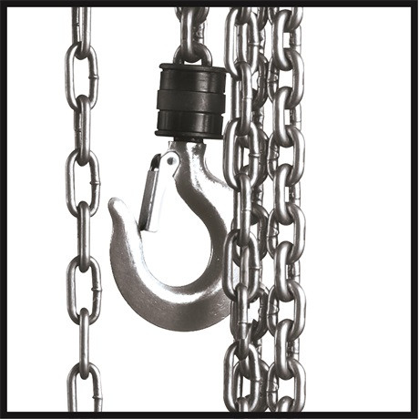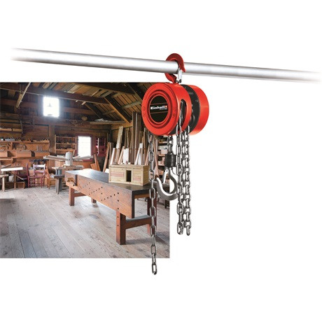 Az Einhell TC-CH 1000 segítségével könnyen felemelheti és mozgathatja még a nehezebb terheket is. A láncos emelő nélkülözhetetlen segítőtársa lesz a műhelyben és a garázsban, hiszen segítségével úgy tudja felemelni és mozgatni még a nehezebb tárgyakat is, hogy közben az egészségét is óvja, és a hátát is kíméli. A biztonságos emelésről és mozgatásról a biztonsági kengyellel ellátott teheremelő horog gondoskodik. A Einhell TC-CH 1000 láncos emelőt a tetején lévő biztonsági kampó segítségével rögzítheti. A hosszú kézi láncos emelő használata rendkívül egyszerű. Az emelő segítségével 2,5 méter magasságig emelheti fel a max. 1000 kg tömegű terheket. A 180 x 160 mm-es (Szé x Ma) méretnek köszönhetően még normál belmagasságú zárt helyiségekben is könnyedén dolgozhat az emelővel. A robusztus zárt fém kivitel biztonságos láncvezetést garantál.