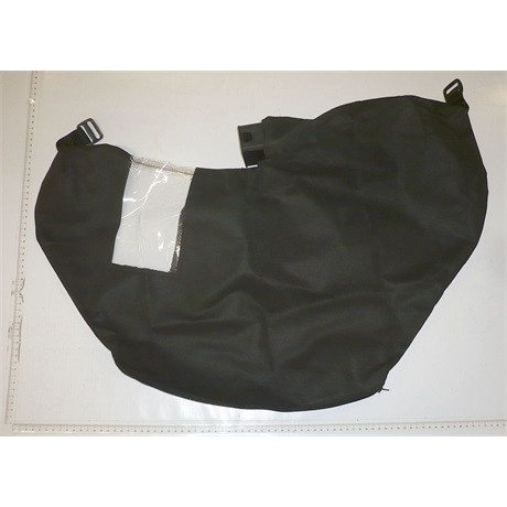 Fűgyűjtő zsák nyílással a telítettségi szint ellenőrzéséhez
