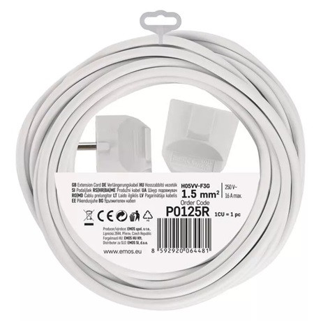 Emos HOSSZABBÍTÓ 5 M / 1 ALJZAT / FEHÉR / PVC / 1,5 MM2 P0125R