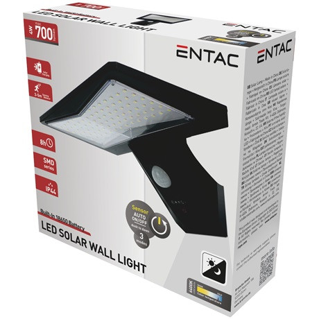 Entac Napelemes Műanyag Fali lámpa 4W SMD mozgásérzékelővel.
