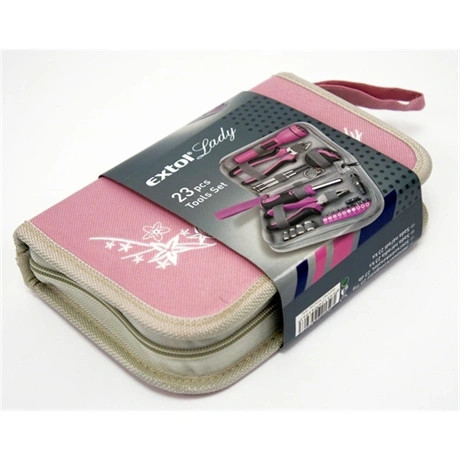 Extol Lady SZERSZÁMKÉSZLET, 23DB, 1/4"; EXTOL LADY, RÓZSASZÍN, 4 DUGÓFEJ (6-12MM), FOGÓK, CSAVARHÚZÓ MARKOLAT, MÉRŐSZALAG, BIT-EK 6595