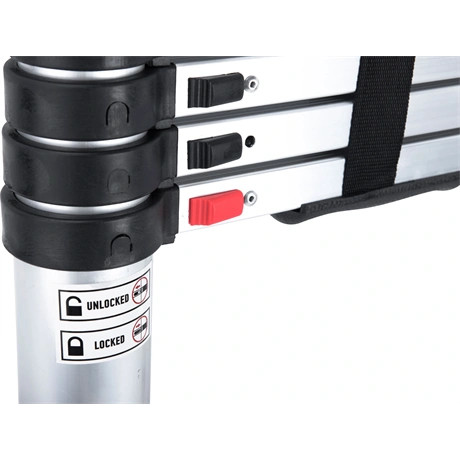 Az egyes létrafokai a létrának biztonsági rögzítőelem segítségével rögzíthetők.