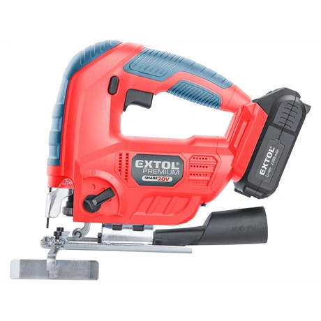 Az Extol® Premium SHARE 20 V dekopírfűrésszel, megfelelő fűrészlapok használatával, tömörfa léceket és deszkákat, faforgács és farost lemezeket, műanyagot, kemény gumit, kerámiát vagy fém lemezeket, továbbá elszívóhoz (műhelyporszívóhoz) csatlakoztatva gipszkarton, cement-faforgács stb... lemezeket lehet darabolni és fűrészelni, egyenes vagy ívelt vonalban. Az előtolás beállításával optimálisan lehet beállítani a fűrészelés sebességét. A „Bosch” rendszerű gyorsbefogónak köszönhetően, szerszám nélkül lehet a különböző gyártóktól származó „Bosch” típusú fűrészlapokat behelyezni és cserélni a készülékben. Az állítható előtolási fokozatok (0+3) biztosítják az anyagnak megfelelő optimális fűrészelést.