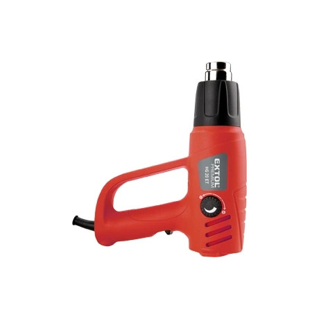 Az Extol Premium 8894801 hőlégfúvó pisztoly festékbevonatok eltávolítására, frissen felhordott rétegek szárítására, műanyagok (pl. csövek) és aszfaltburkolatok alakítására és kötésére, ragasztott illesztések megoldására, forrasztásra és a vezetékben lévő megfagyott víz felolvasztására szolgál. A hőlégfúvó két különböző levegő hőmérséklettartomány- és térfogatáram-fokozat beállítást tesz lehetővé. A hőmérséklet beállításának köszönhetően a beállított fokozat keretén belül hőmérséklet-beállításra nyílik lehetőség. A készülék kis súlya kényelmessé teszi a munkavégzést.
