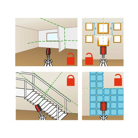 A lézeres szintező önszintező funkciója: a rendkívül jó minőségű mechanikának köszönhetően a lézer rövid idő alatt önműködően vízszintes helyzetbe áll be.