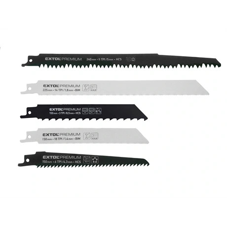 Extol Premium SZABLYAFŰRÉSZLAP KÉSZLET, 5DB, BOSCH BEFOGÁS, HCS/BIMETÁL, FA, MŰANYAG, FÉM 8806000