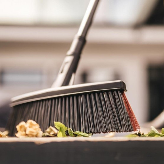 Általános kültéri seprű, ami alkalmas járdák, kövezett teraszok és egyéb kültéri területek takarításához