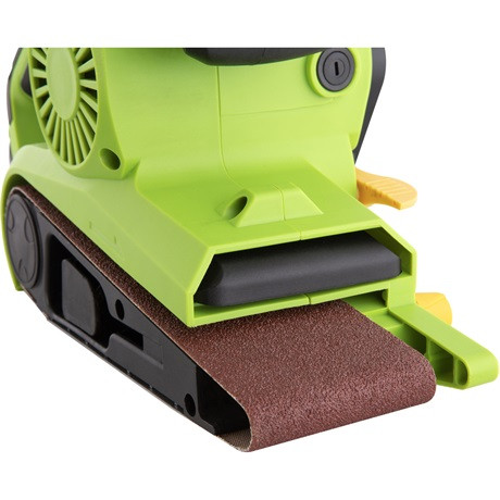 A FIELDMANN szalagcsiszoló ideális fa, fém, beton vagy kőből készült munkadarabok feldolgozására. A csiszolópapír cseréje