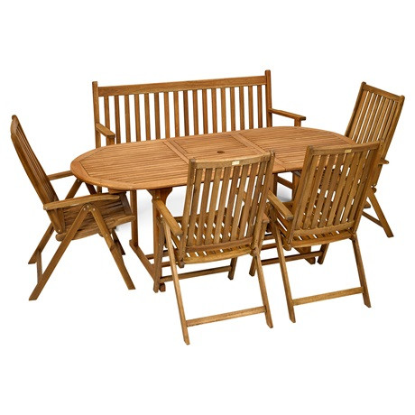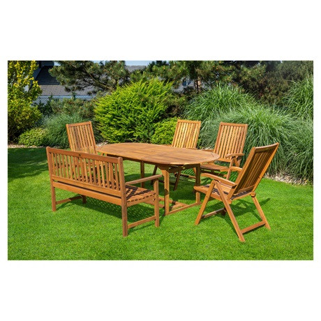A Fieldmann CARMEN II. szett az egyik legkedveltebb bútorösszeállítás. Ideális választás teraszokra, kertekbe. Az asztal és a székek minőségi trópusi akácfából készültek. A CARMEN II. szett tartalmaz egy 90 x 150 cm méretű asztalt, mely akár 200 cm hosszúságúra bővíthető, valamint a rendelkezik egy szabványos nyílással, ahol elhelyezhető a napernyő. A négy darab ergonomikusan kialakított karosszék támlája 5-féle állásba állítható a kartámaszok eltolásával valamint. A kerti padon akár 3 felnőtt tud kényelmes ülni.