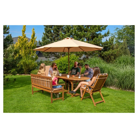 A kerti fa bútorok időtállósága, biztonsága, hosszú élettartama és a természetes anyagok varázsa miatt nagyon népszerűek. A FIELDMANN fából készült bútorai trópusi akácfából készülnek, melynek keménysége és robusztussága, valamint erős időjárás, öregedés ellenállási képesség jellemzi. Az akácfa ideális anyag kerti bútorok készítéséhez, mivel rendkívül tartós, kemény és ellenáll a penésznek és a kártevőknek. A FIELDMANN fabútorok tartós sárgaréz csatlakozókkal lettek felszerelve, beleértve a biztonsági zárakat a hirtelen összecsuklás ellen.