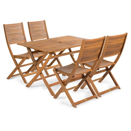 A Fieldmann EMILY szett az egyik legkedveltebb bútorösszeállítás. Az asztal és a székek minőségi trópusi akácfából készültek. Az EMILY szett tartalmaz egy 120 x 70x 75 cm méretű asztalt, mely rendelkezik egy szabványos nyílással, ahol elhelyezhető a napernyő és 4 db ergonomikusan kialakított széket. Minden szék könnyen összecsukható, ezzel minimalizálva a tárolási gondot.