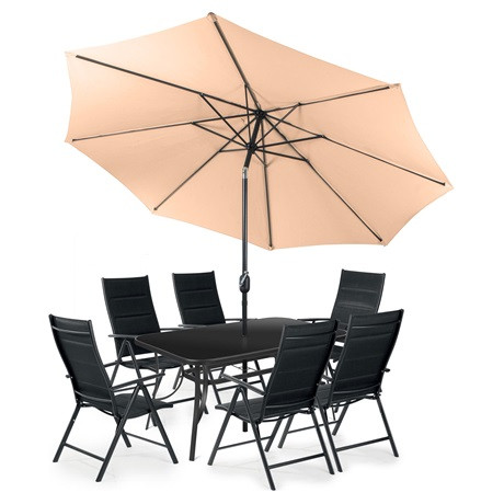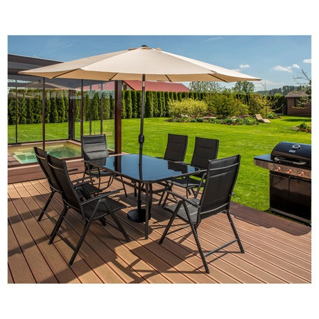 • Szett tartalma: 1 asztal + 6 szék + 1 napernyő