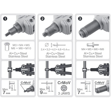 3-az1-ben funkció: szegecsanya húzó + szegecscsavar húzó + popszegecs húzó fogó is egy termékben!