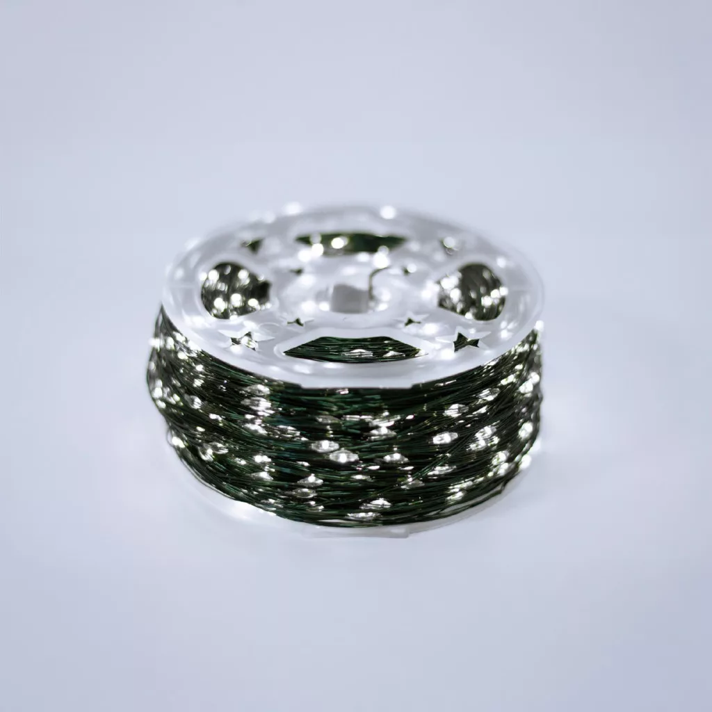 A fényfüzér tekintélyes 150 méteres hosszával kiterjedt felületek díszítésére is alkalmas, így akár egy egész homlokzat, kert vagy nagyobb belső tér is ragyogásba borítható. A vékony, sötétzöld rézvezeték szinte észrevétlen marad, így a fényhatás még inkább érvényesül, és a figyelem kizárólag a ragyogó fényekre irányul.