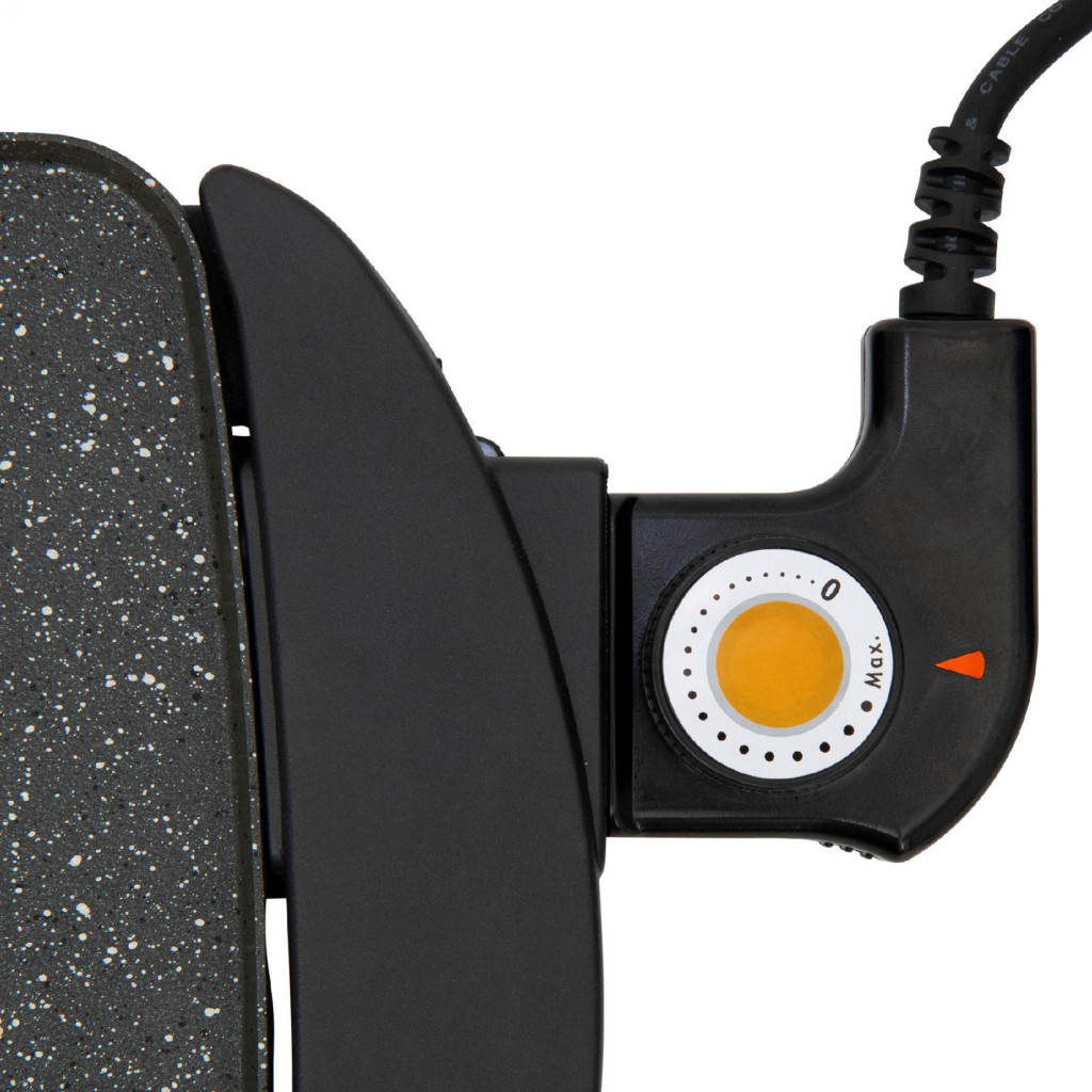 A grill beállítható sütési hőmérséklettel rendelkezik, így könnyen alkalmazkodik a különböző ételek igényeihez. A tapadásmentes bordázott vagy sima felületek kiváló eredményt és változatosságot nyújtanak a grillezett ételekben. A rendkívül könnyen tisztítható kialakítás, a kivehető zsírgyűjtő fiók és a grillezőfelület 52 x 26,5 cm-es mérete maximális kényelmet biztosít a használat során. A grill stabil műanyag állványának gumilábai gondoskodnak a készülék biztonságos elhelyezéséről, míg a hőálló műanyag fogantyúk könnyű és biztonságos mozgatást tesznek lehetővé.