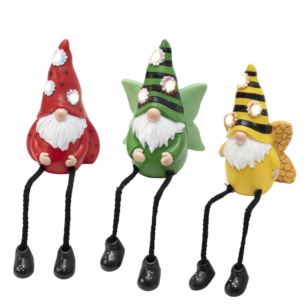 Minden törpefigurába 3 melegfehér LED van beépítve, amelyek finoman megvilágítják a törpe kezében lévő virágokat. Az aprólékosan kidolgozott műgyanta kivitel és a lógó lábú design játékos és bájos megjelenést biztosít, így tökéletes kiegészítője lehet kertjének, teraszának vagy erkélyének.