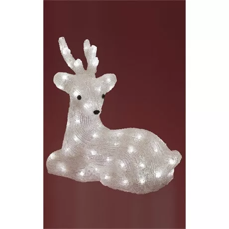 A KDA 7 típusú akril rénszarvas kül- és beltéren egyaránt kiválóan alkalmazható dekoráció. Impozáns méreteiből (34 x 36 cm + 5 m kábel) adódóan azonban kültéren talán gyakrabban találkozhatunk vele. Világítását 64 db hidegfehér LED biztosítja. Tápellátását pedig kültéri kivitelben kapható IP44-es adapter biztosítja.
