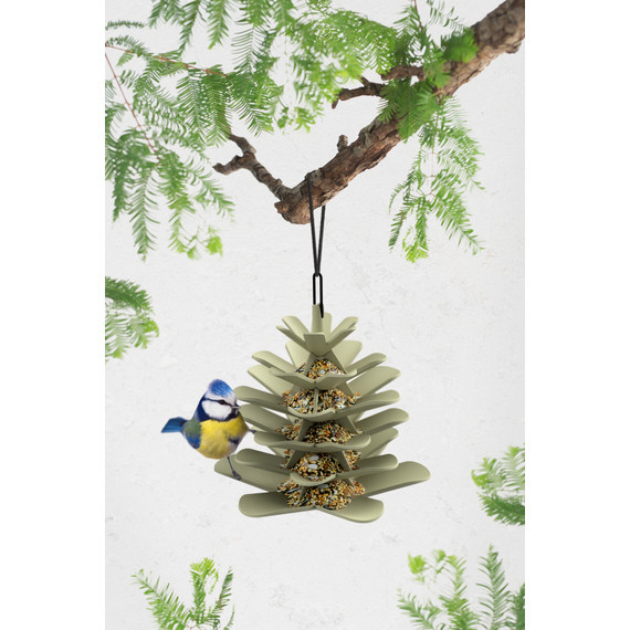 Dekoratív toboz formájú szemes takarmány adagolására alkalmas madáretető