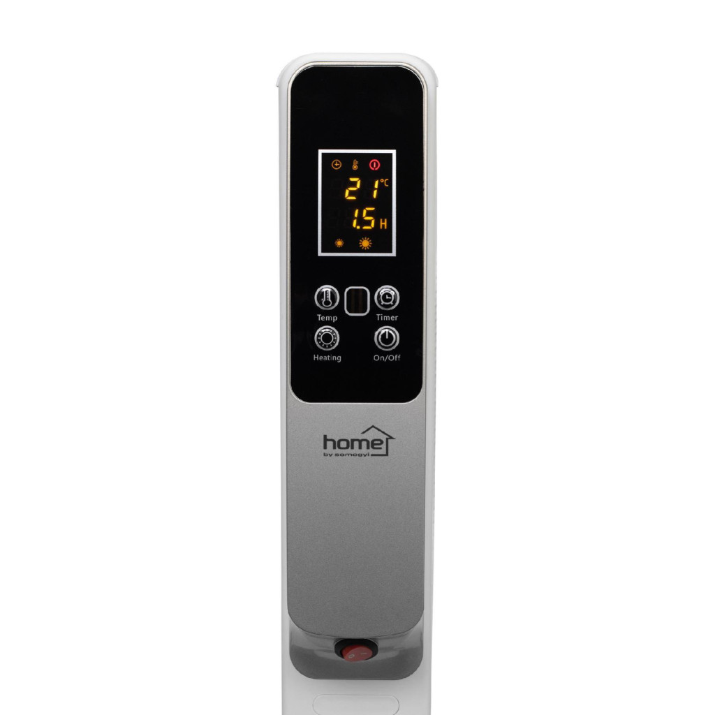 A Home FMC 2000 konvektor elektronikus nyomógombokkal és távirányítóval is vezérelhető, így kényelmesen, akár a kanapéról is beállíthatja a kívánt hőmérsékletet. A csendes működés garantálja a zavartalan otthoni környezetet, míg a túlmelegedés és felborulás elleni védelem maximális biztonságot nyújt. A konvektor kerekeken könnyen gördíthető, így egyszerűen áthelyezhető a lakás bármely pontjára. A vezetéktároló praktikus megoldást nyújt a kábelek rendezett elhelyezésére. A távirányító tápellátása egy 3 V-os (CR2025) gombelem, amely tartozékként jár a készülékhez. A konvektor tápellátása 220-240 V~ / 50-60 Hz. A konvektor méretei (54x62x26,5(8) cm) révén könnyedén elhelyezhető bármely helyiségben, miközben modern és letisztult megjelenésével minden enteriőrbe illeszkedik.