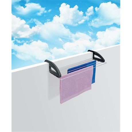 • A ruhaszárító többféle szélességű felületen is használható, pl. erkélykorlátra, ajtó tetejére akasztva, vagy radiátoron. Ezt a füleken lévő fokozatok segítségével lehet szabályozni.