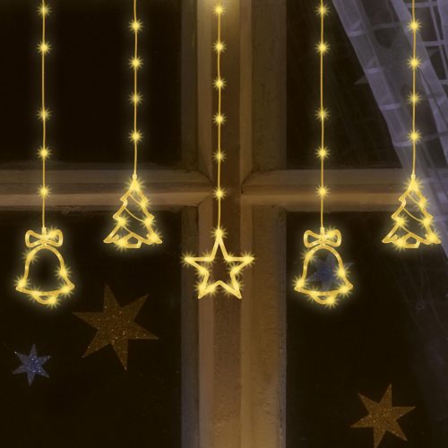 Home KAF 11/WW micro LED-es figurás fényfüggöny, 2 m / 186 db melegfehér LED, harang / fenyő / csillag figurákkal, hálózati adapter, kül- és beltéri kivitel