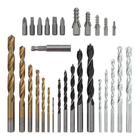 • A készlet tartalmazza a leggyakoribb bit- és fúróméreteket