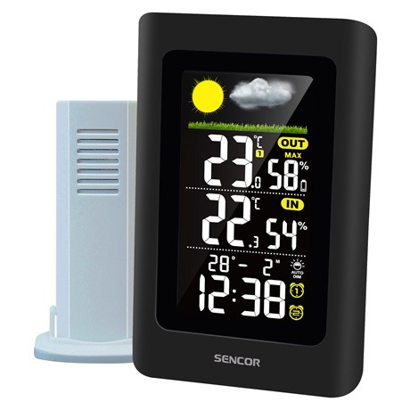 A Sencor SWS 4270 időjárás állomás méri a bel-, és kültéri hőmérsékletet és páratartalmat. Az LCD kijelzőn megjeleníti a pontos időt, a dátumot és a napot, valamint ismétlődő ébresztés is beállítható. 12 és 24 órás időformátum megadásának lehetősége, valamint a hőmérséklet °C és °F fokban is megjeleníthető. A maximális és minimális értékeket a készülék memóriájában menti el. Lehetőség van a háttérvilágítás programozására. Külön funkció a fagy veszélyre történő figyelmeztetés is.  A praktikus kialakításnak köszönhetően az asztalra helyezhető , de akár a falra is akasztható. A vezeték nélküli érzékelő hatótávolsága 50 méter.