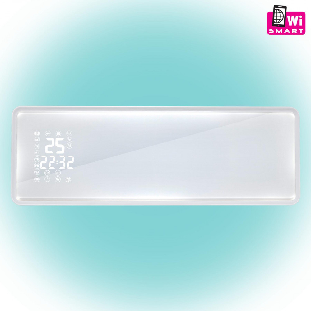 Elegáns design és modern technológia egyben? Az FKF 54203 SMART fali ventilátoros fűtőtest üveg előlappal új szintre emeli otthonának melegét és stílusát. Az okostelefonos alkalmazással távolról is könnyedén szabályozhatja a készülék minden funkcióját. A készülék 2 fűtési fokozata (1000W / 2000W) lehetővé teszi a kellemes hőmérséklet beállítását, míg a mozgó légterelő lamellák gondoskodnak a meleg levegő egyenletes elosztásáról. Az elektronikus termosztát, a 24 órás időzítő és a heti program kombinációjával naponta és hetente is beállíthatja a kívánt fűtési programot. A túlmelegedés elleni védelem pedig megbízható működést garantál. Az FKF 54203 kompakt méreteivel (54x12x18,5 cm), és elegáns üveg előlapjával az enteriőr igazi dísze lesz.