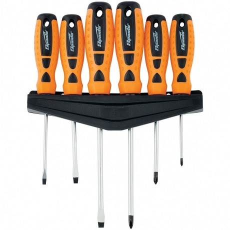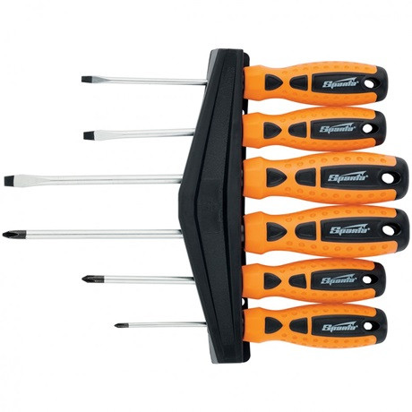 Sparta "Point" 11782 csavarhúzó készlet kétkomponensű fogantyúkkal, CrV, 6 db legelterjedtebb méretű szerszámból áll.