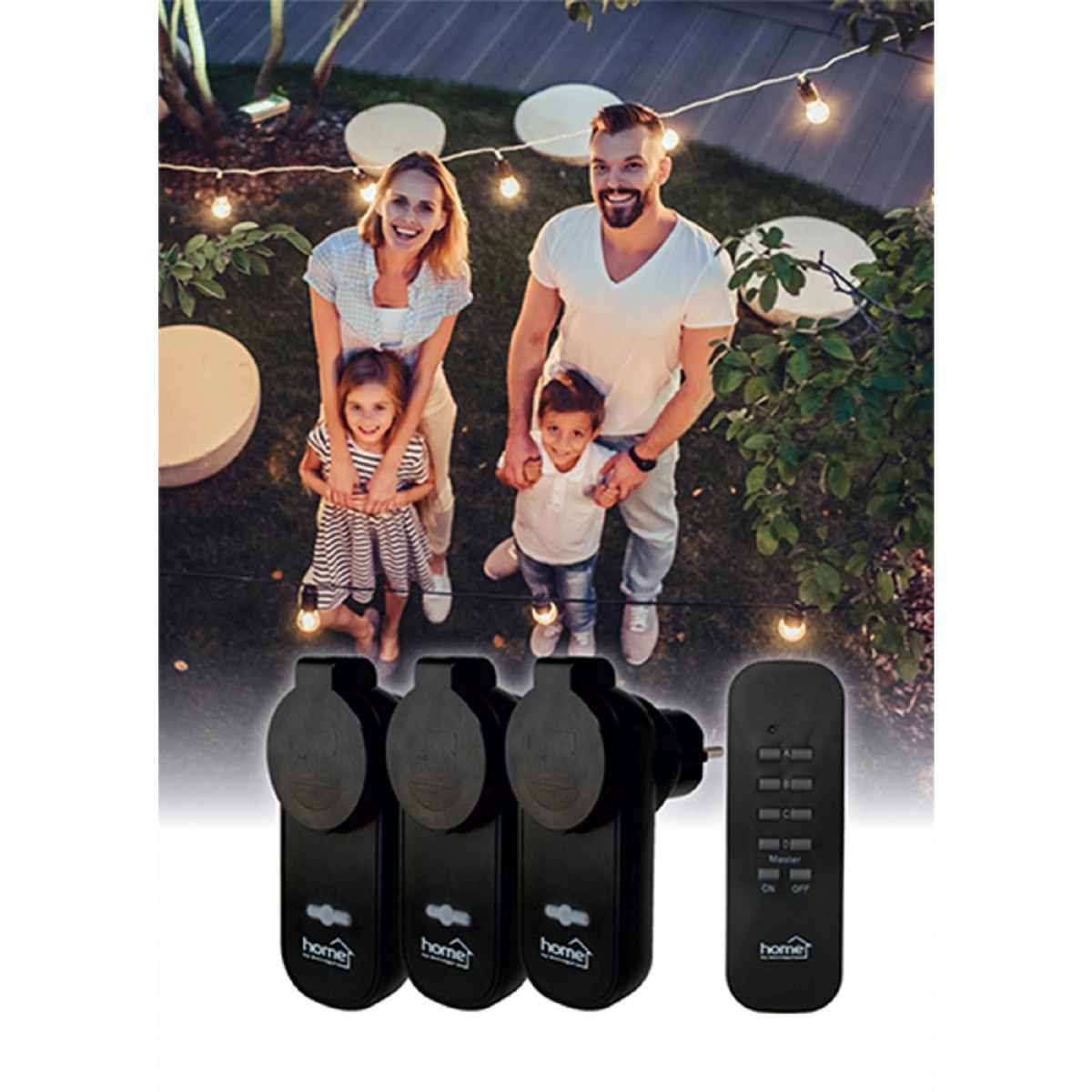 Home THO 113 3db-os távirányítható kültéri hálózati aljzatszett, 40 m hatótáv, IP44 védelem, max. 1000 W, rádiós összeköttetés, 230 V, fekete