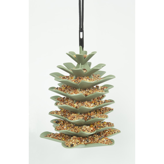 Dekoratív toboz formájú szemes takarmány adagolására alkalmas madáretető